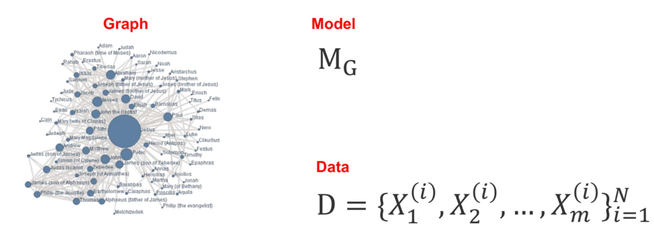 A graphical model is a technique for representing a probability distribution to make inferences in situations involving uncertainty, which is essential for tasks like speech recognition and computer vision. Typically, we have a dataset consisting of samples: $D = {X_{1}^{(i)},X_{2}^{(i)},…,X_{m}^{(i)} }_{i=1}^N$. The relationships between the elements in each $X$ can be represented by a graph $G$. From this, we derive the model $M_G$.