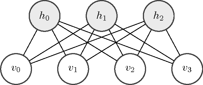 An RBM is an undirected graphical model with visible ( v ) and hidden ( h ) units: